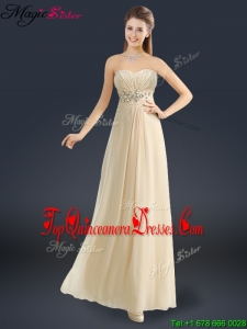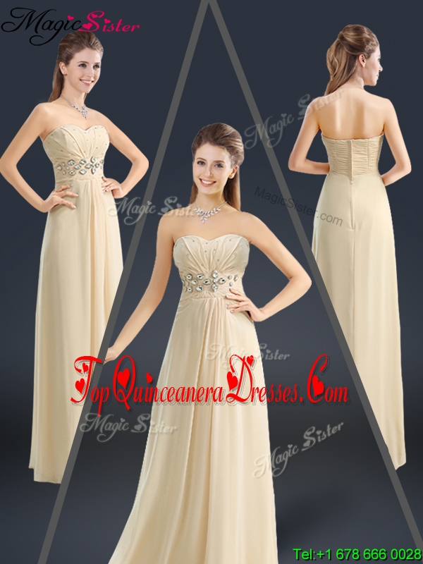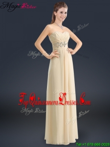 Latest Sweetheart Beading Dama Dresses in Champagne
