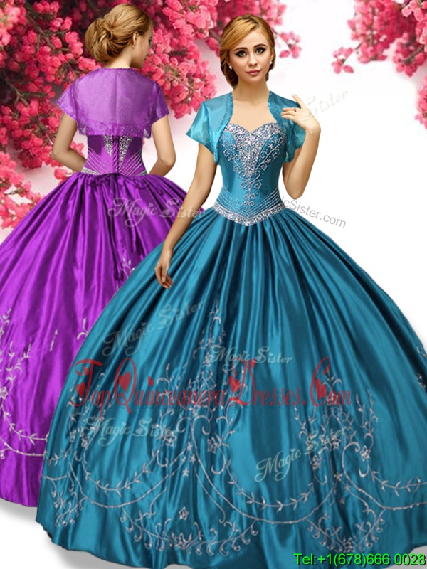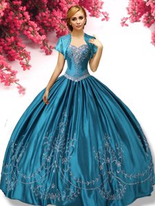 Latest Teal Taffeta Lace Up Sweetheart Sleeveless Floor Length Quinceanera Gown Beading and Embroidery