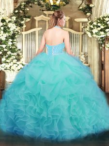 Latest Tulle Lace Up Quinceanera Gown Sleeveless Floor Length Beading and Ruffles