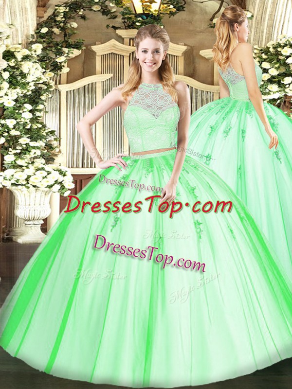 Latest Tulle Sleeveless Floor Length 15 Quinceanera Dress and Lace and Appliques