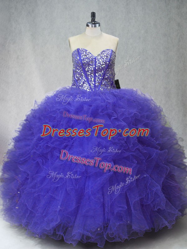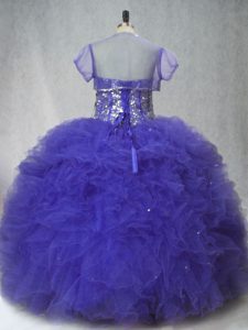 Latest Tulle Sleeveless Floor Length 15th Birthday Dress and Beading and Ruffles