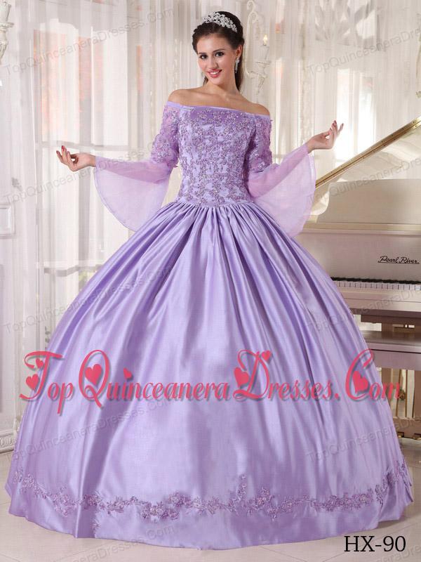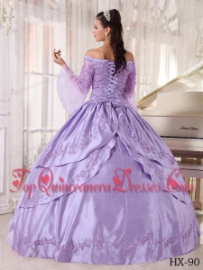 Lavender Ball Gown Off The Shoulder Floor-length Taffeta and Organza Appliques Quinceanera Dress