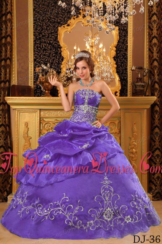 Lavender Ball Gown Strapless Floor-length Organza Beading Quinceanera Dress