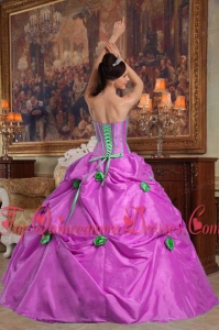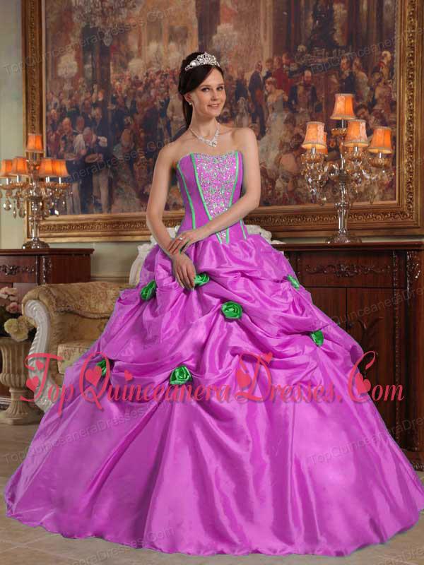 Lavender Ball Gown Strapless Floor-length Taffeta Beading and 3D Flower Unique Quinceanera Dress