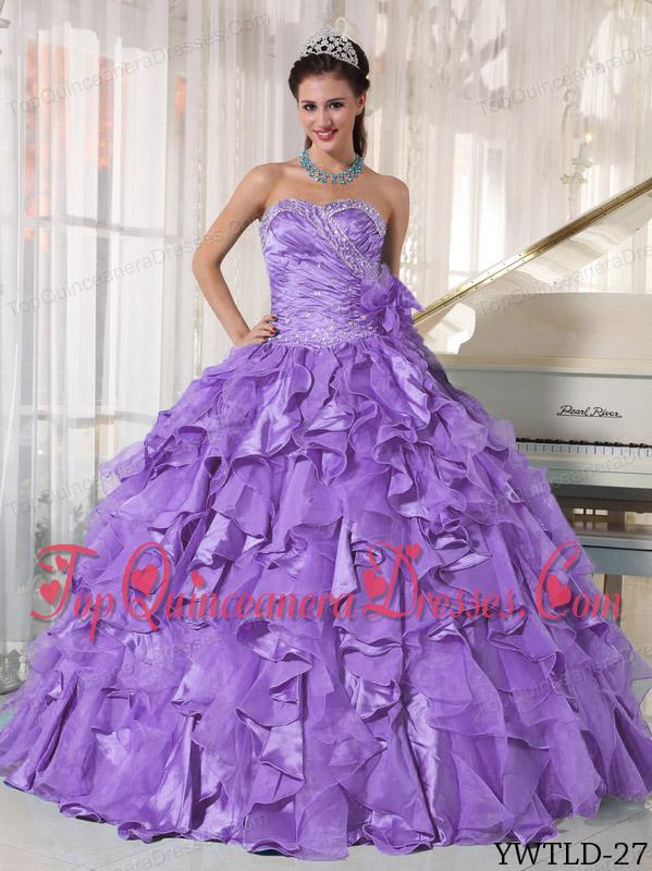 Lavender Ball Gown Sweetheart Floor-length Organza Beading Quinceanera Dress