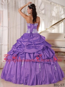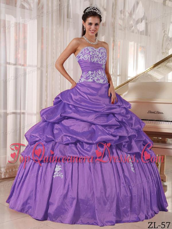 Lavender Ball Gown Sweetheart Floor-length Taffeta Appliques and Ruch Quinceanera Dress