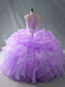 Lavender Ball Gowns Beading and Ruffles Quinceanera Dress Zipper Organza Sleeveless Floor Length