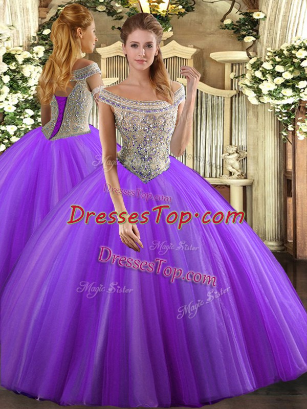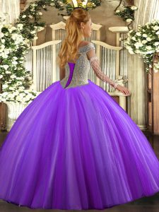 Lavender Ball Gowns Beading Quinceanera Dresses Lace Up Tulle Sleeveless Floor Length