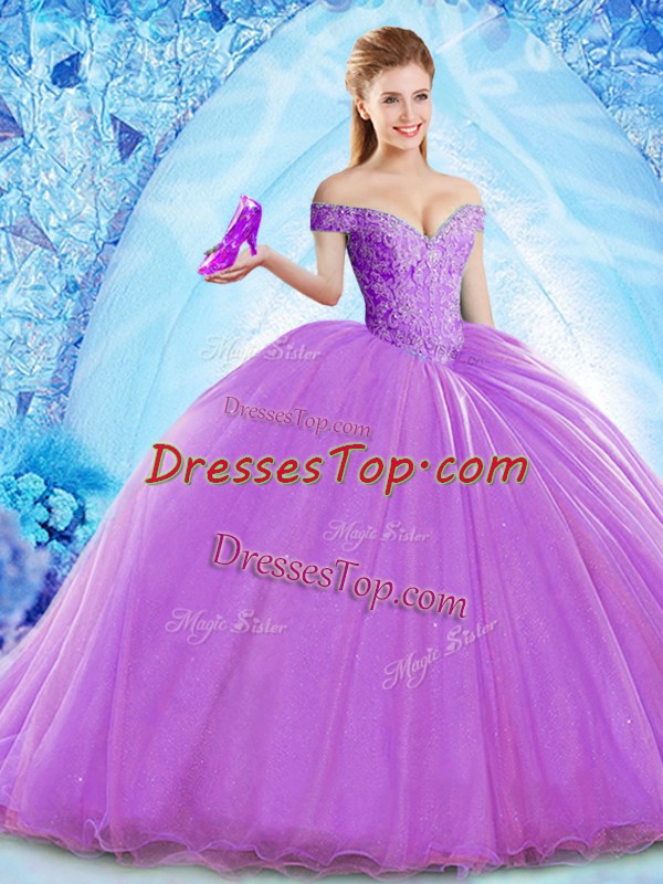 Lavender Ball Gowns Beading Sweet 16 Dress Lace Up Organza Sleeveless