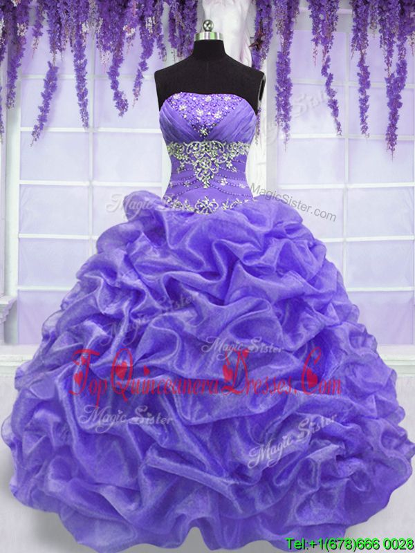 Lavender Ball Gowns Organza Strapless Sleeveless Beading Floor Length Lace Up Ball Gown Prom Dress
