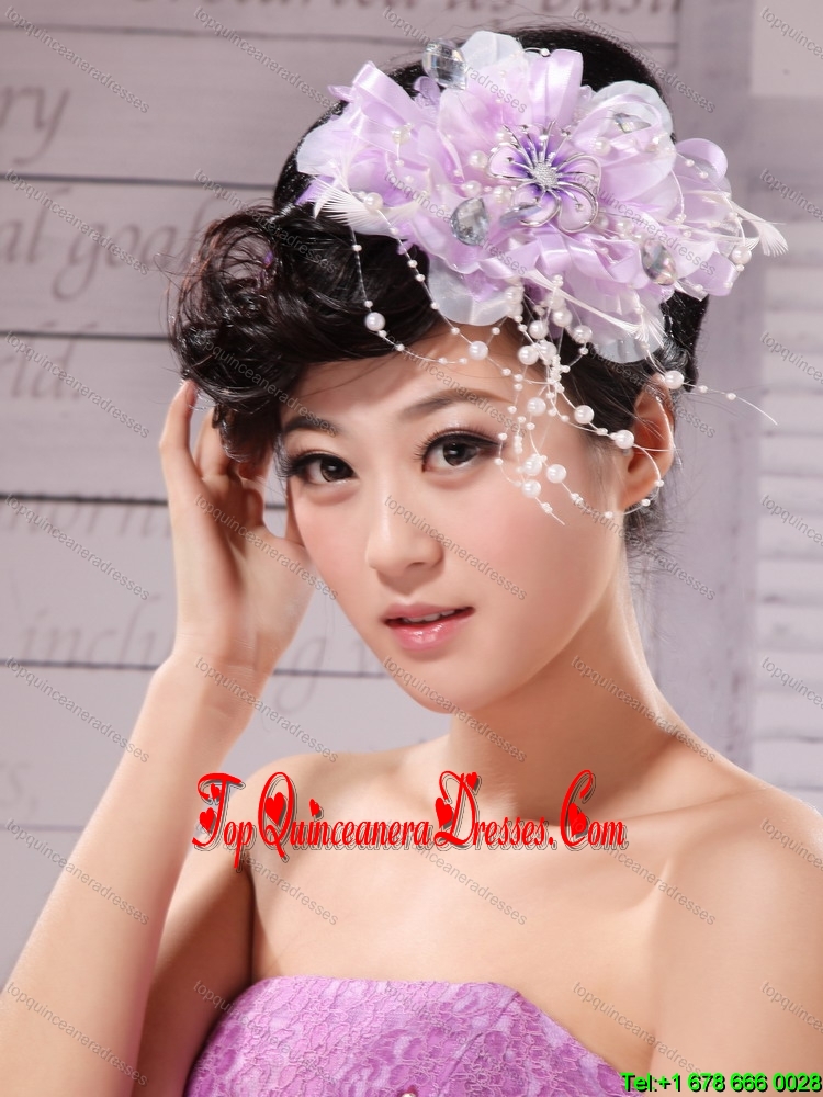 Lavender Beading and Hand Made Flowers For Headpiece
