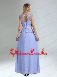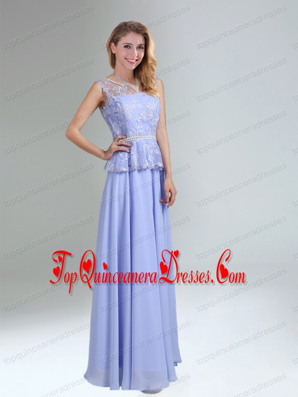 Lavender Belt and Lace Empire 2015 Dama Dress with Bateau