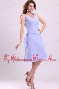 Lavender Chiffon Dama Dresses with A-line V-neck Knee-length