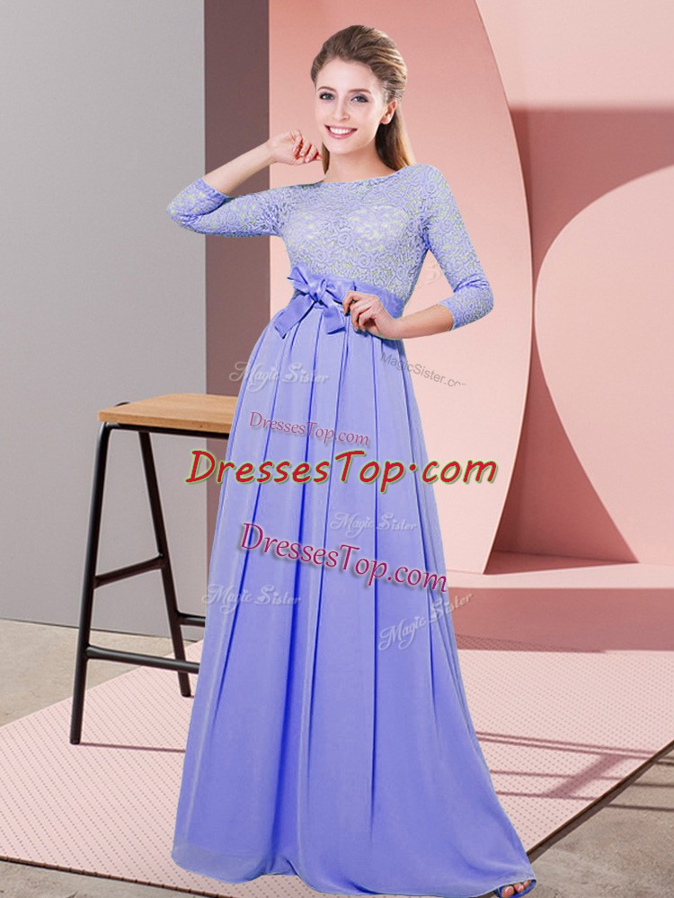 Lavender Chiffon Side Zipper Dama Dress 3 4 Length Sleeve Floor Length Lace and Belt
