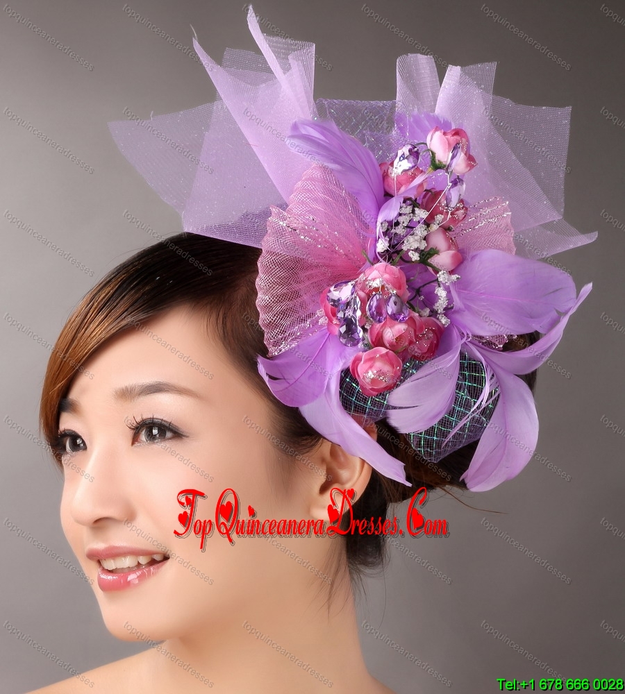 Lavender Hand Made Flowers Headpieces Feathers On Sale