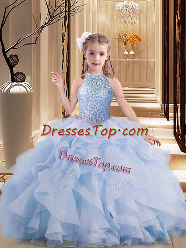 Lavender High-neck Lace Up Beading Pageant Dress Wholesale Brush Train Sleeveless