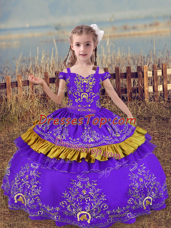 Lavender Lace Up Pageant Dress for Girls Beading and Embroidery Sleeveless Floor Length