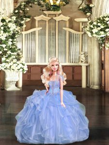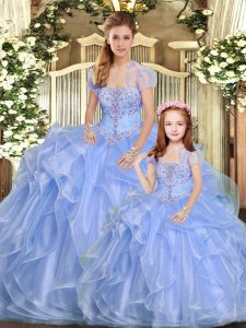 Lavender Lace Up Quinceanera Gowns Beading and Ruffles Sleeveless Floor Length