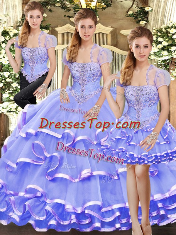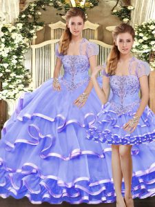 Lavender Lace Up Strapless Beading and Ruffled Layers Quinceanera Gown Organza Sleeveless