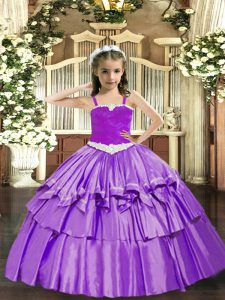 Lavender Lace Up Straps Appliques and Ruffled Layers Little Girls Pageant Gowns Organza Sleeveless