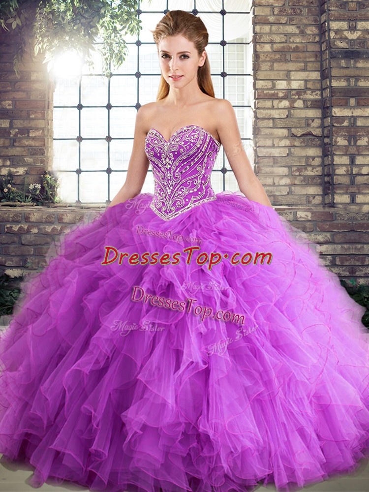 Lavender Lace Up Sweet 16 Dresses Beading and Ruffles Sleeveless Floor Length