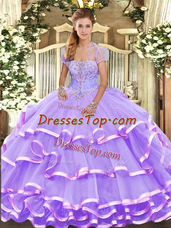 Lavender Lace Up Sweet 16 Quinceanera Dress Beading and Ruffled Layers Sleeveless Floor Length