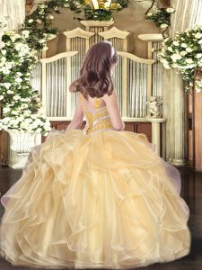 Lavender Organza Lace Up Straps Sleeveless Floor Length Little Girl Pageant Dress Beading and Ruffles