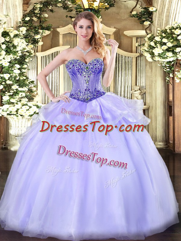 Lavender Organza Lace Up Sweetheart Sleeveless Floor Length Sweet 16 Dress Beading