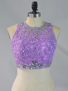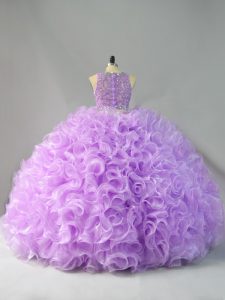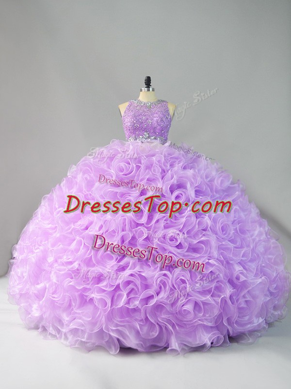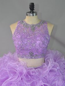 Lavender Scoop Neckline Beading and Ruffles Quinceanera Gowns Sleeveless Zipper