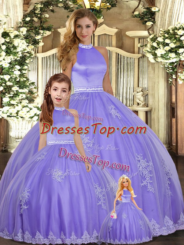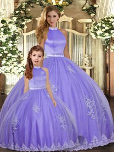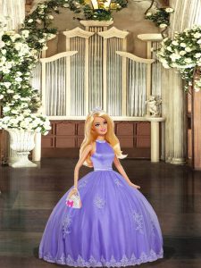 Lavender Sleeveless Beading and Appliques Floor Length Sweet 16 Quinceanera Dress