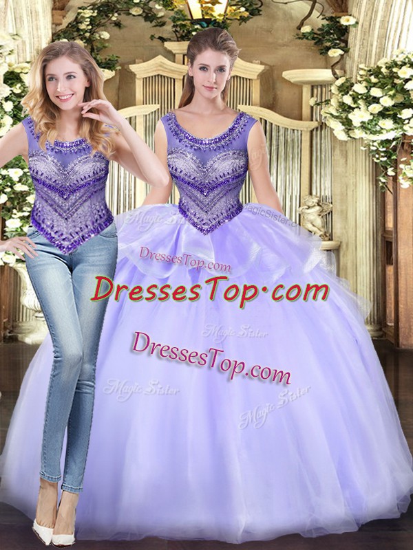 Lavender Sleeveless Beading and Ruffles Floor Length Sweet 16 Dress