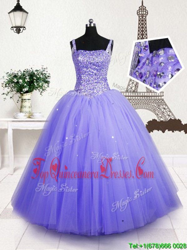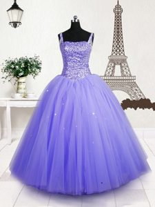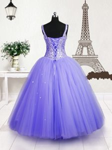 Lavender Sleeveless Beading and Sequins Floor Length Little Girls Pageant Dress