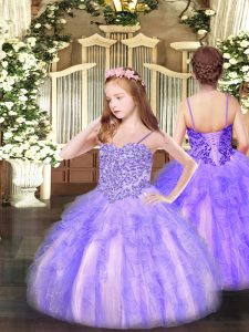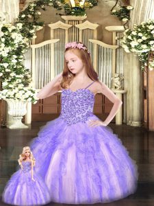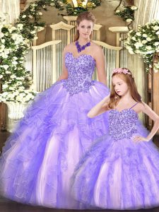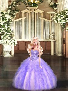Lavender Sleeveless Floor Length Beading and Ruffles Lace Up Ball Gown Prom Dress