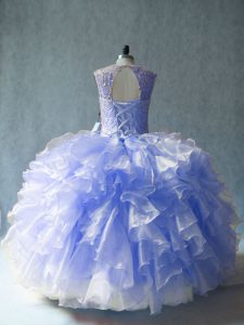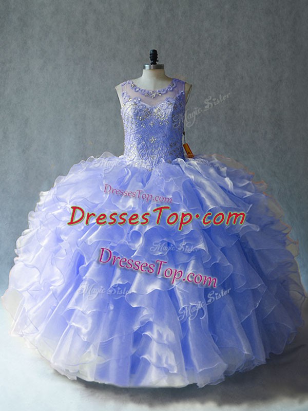 Lavender Sleeveless Floor Length Beading and Ruffles Lace Up Quinceanera Dresses