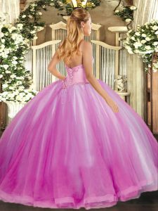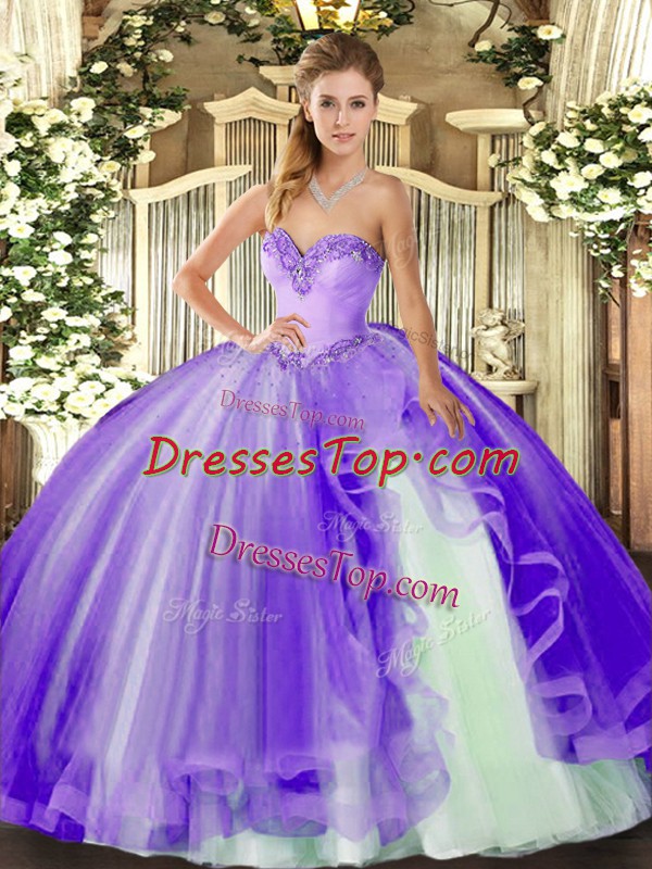 Lavender Sleeveless Floor Length Beading and Ruffles Lace Up Quinceanera Gown