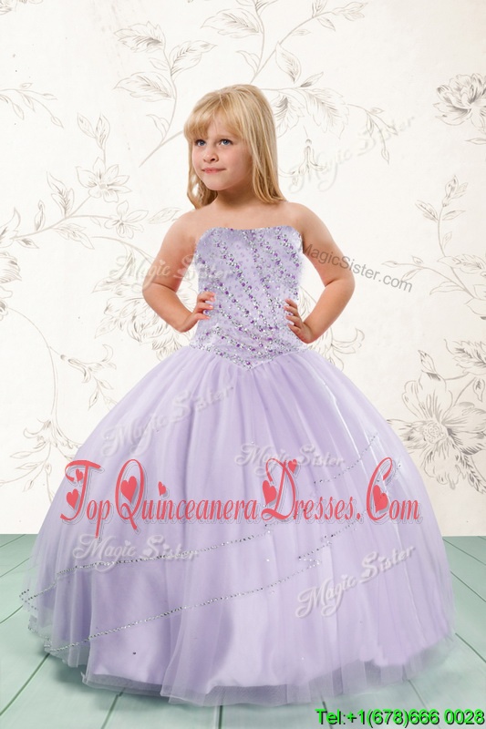 Lavender Sleeveless Floor Length Beading Lace Up Little Girls Pageant Gowns