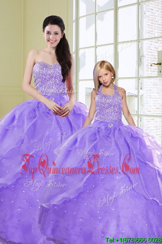 Lavender Sleeveless Floor Length Beading Lace Up Sweet 16 Quinceanera Dress