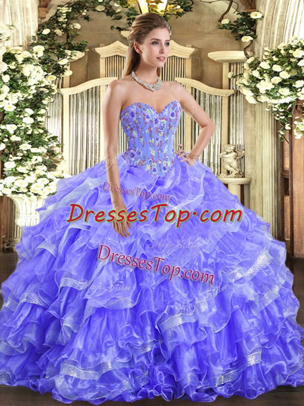 Lavender Sleeveless Organza Lace Up Sweet 16 Dress for Military Ball and Sweet 16 and Quinceanera