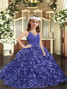 Lavender Sleeveless Organza Zipper Little Girl Pageant Gowns for Party and Sweet 16 and Wedding Party