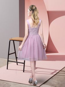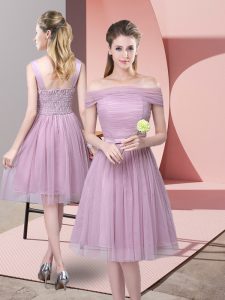 Lavender Sleeveless Ruching and Belt Knee Length Quinceanera Dama Dress