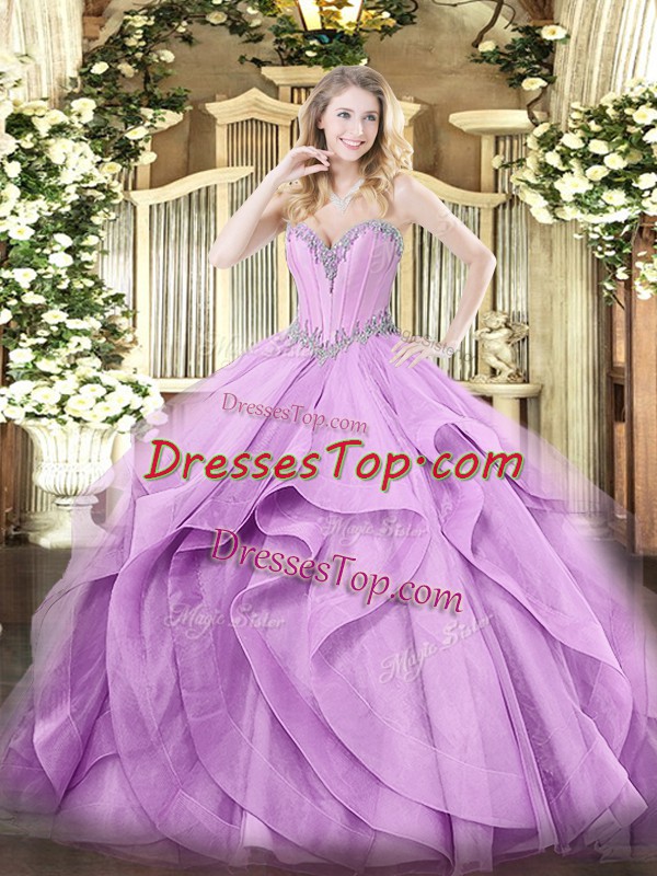 Lavender Sleeveless Tulle Lace Up Sweet 16 Dress for Military Ball and Sweet 16 and Quinceanera