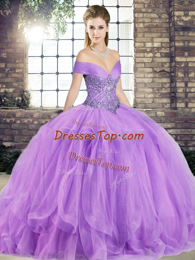 Lavender Sleeveless Tulle Lace Up Vestidos de Quinceanera for Military Ball and Sweet 16 and Quinceanera