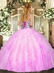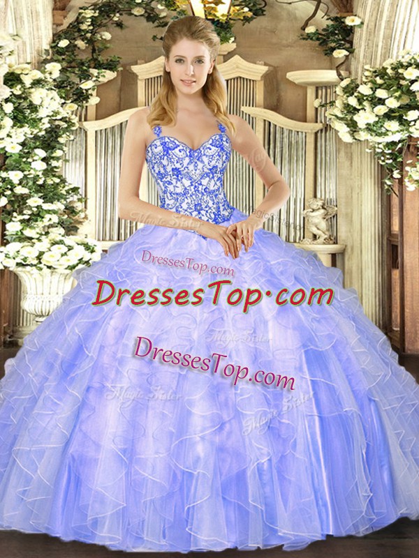 Lavender Straps Neckline Beading and Ruffles 15 Quinceanera Dress Sleeveless Lace Up