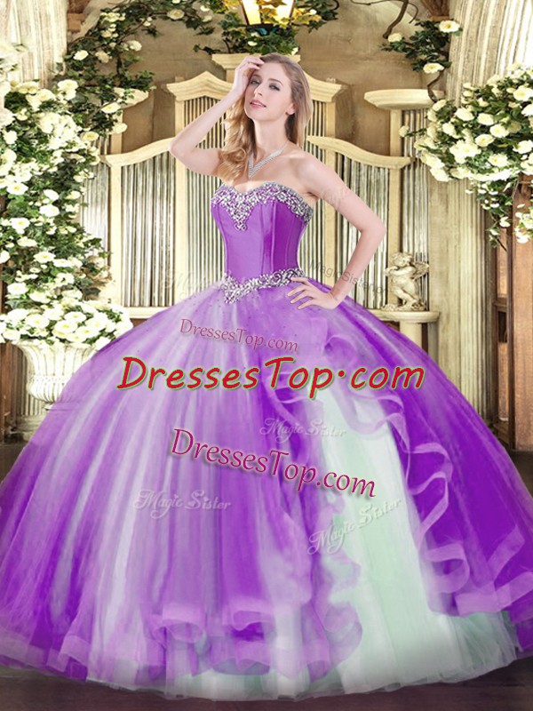 Lavender Sweetheart Neckline Beading and Ruffles Quinceanera Dress Sleeveless Lace Up
