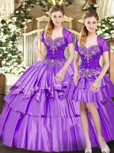 Lavender Three Pieces Organza and Taffeta Sweetheart Sleeveless Beading and Ruffled Layers Floor Length Lace Up Sweet 16 Quinceanera Dress