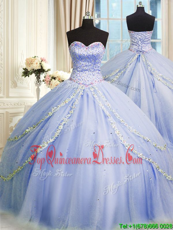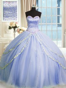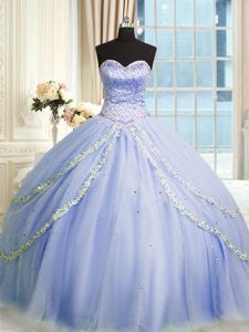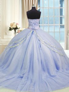 Lavender Vestidos de Quinceanera Military Ball and Sweet 16 and Quinceanera and For with Beading and Appliques Sweetheart Sleeveless Brush Train Zipper