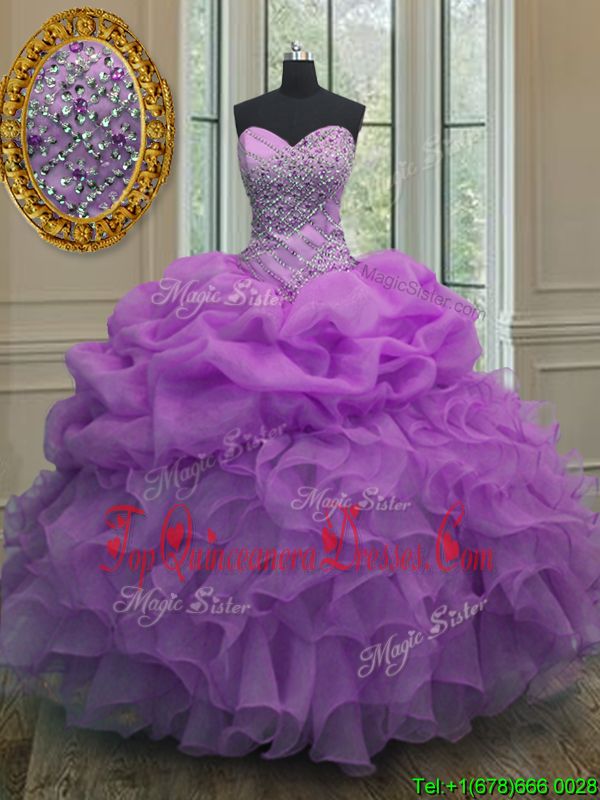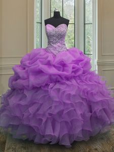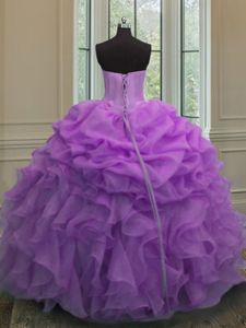 Lavender Vestidos de Quinceanera Military Ball and Sweet 16 and Quinceanera and For with Beading and Ruffles and Pick Ups Sweetheart Sleeveless Lace Up