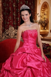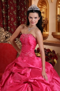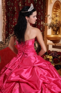 Layered Hot Pink Quinceanera Ball Gowns Beaded Appliques