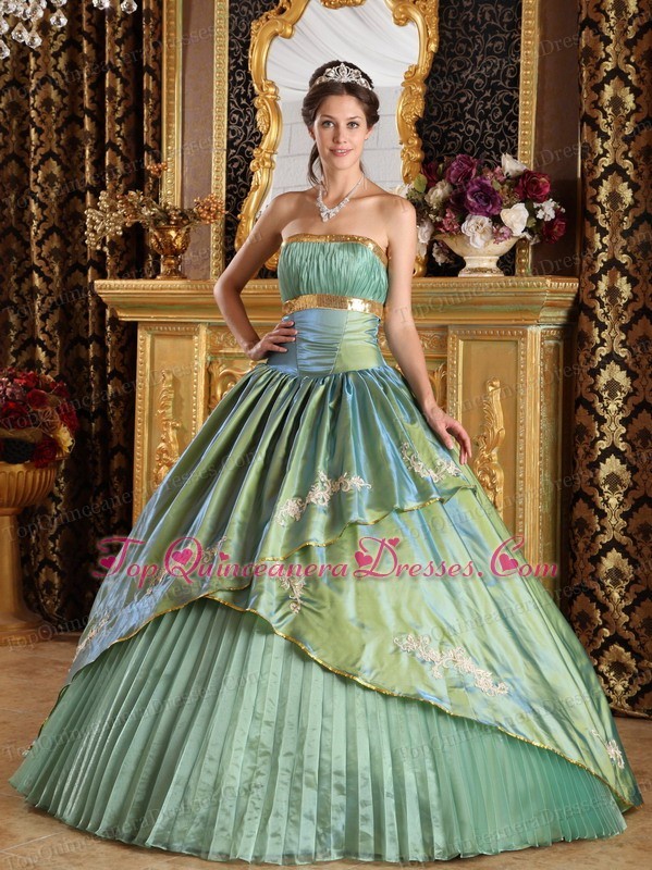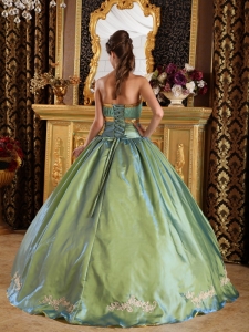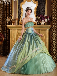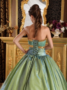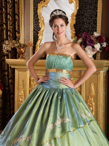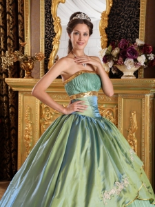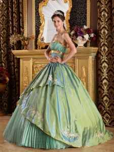 Lemon Green Ruching Quinceanera Dress Strapless Embroidery