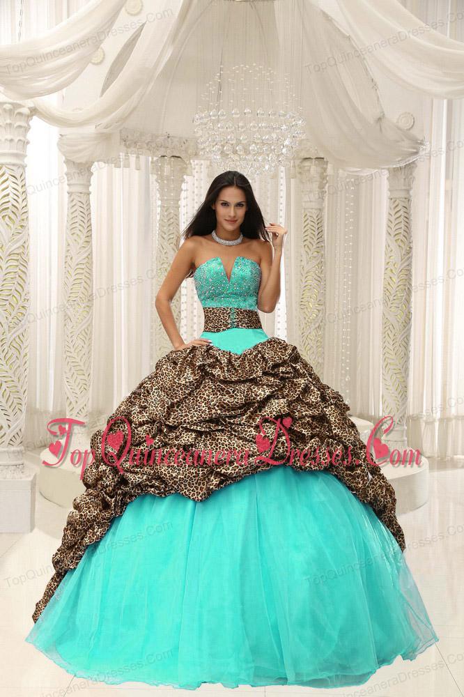 Leopard and Organza Beading Decorate Sweetheart Neckline Unique Quinceanera Dress